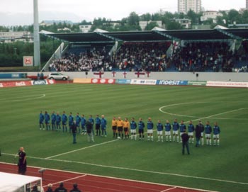 dass die Spieler zu weit weg waren. Im Nieselregen wurden die Nationalhymnen